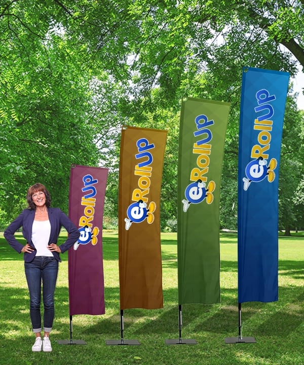 Våra flaggor sublimeras med 100% genomtryck vilket är det absolut vanligast för alla typer av flaggor. Kombinera dina flaggor med ett eller flera fästen så kan du använda dem på flera olika ställen. Alla fötter har en kullagerrotor vilket förlänger livslängden och ger en bättre flöjeleffekt.