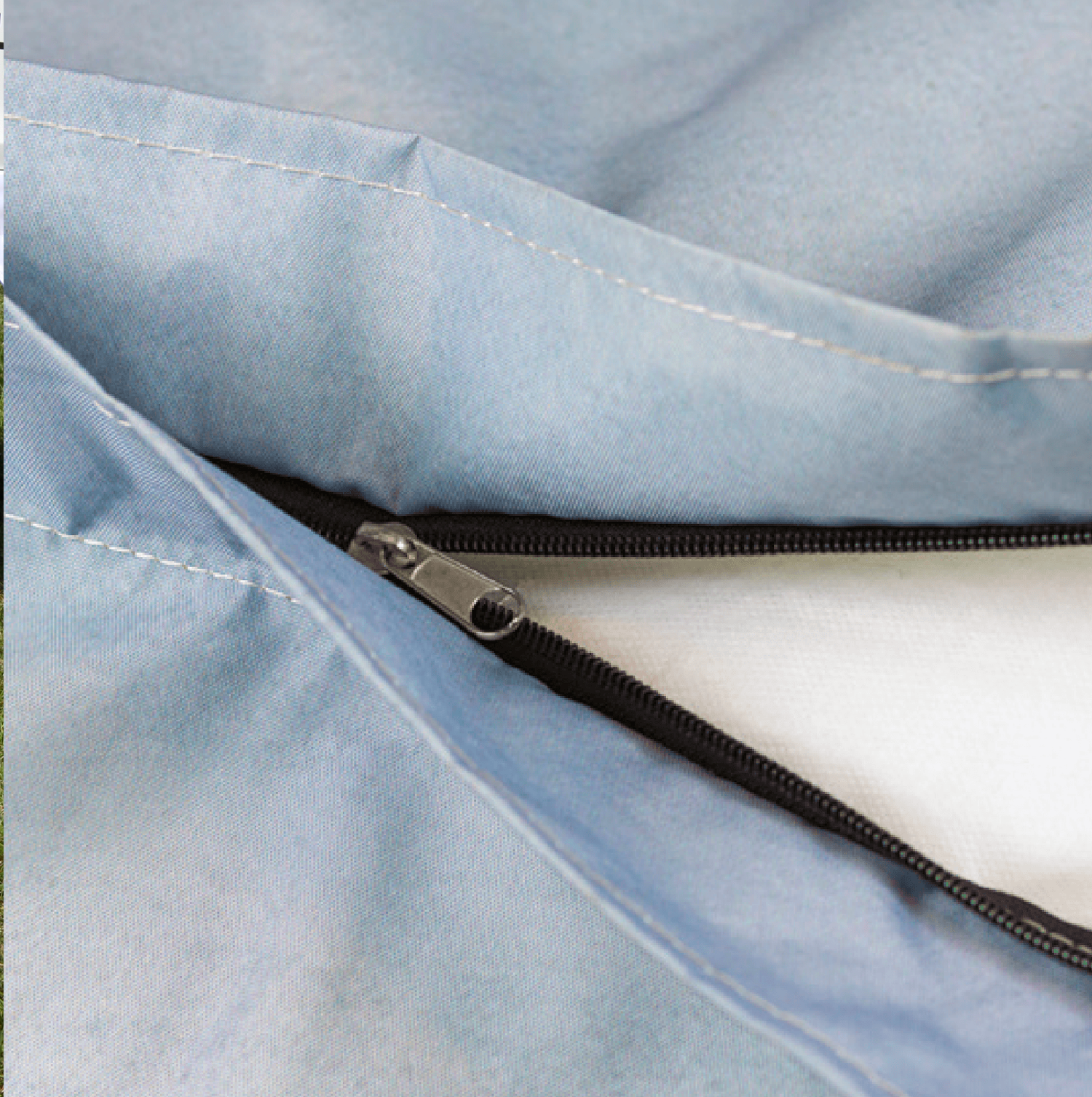 Vår beanbag även kallad saccosäck är fyllda med Polystyrenkulor (Frigolit). Likt ett kuddfodral drar man sedan över det fullfärgsprintade (sublimerade) tygöverdraget och stänger med ett blixtlås. Tyget printas med sublimeringsteknik vilket ger en suverän färgåtergivning och kvalitet. Tyget är även tvättbart, brandklassat och vattenavvisande