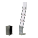Broschyrställ Lyx – Exklusivt och portabelt broschyrställ i stabil konstruktion. Tillverkat i pulverlackerat stål, aluminium samt stryktålig plast i broschyrfacken.