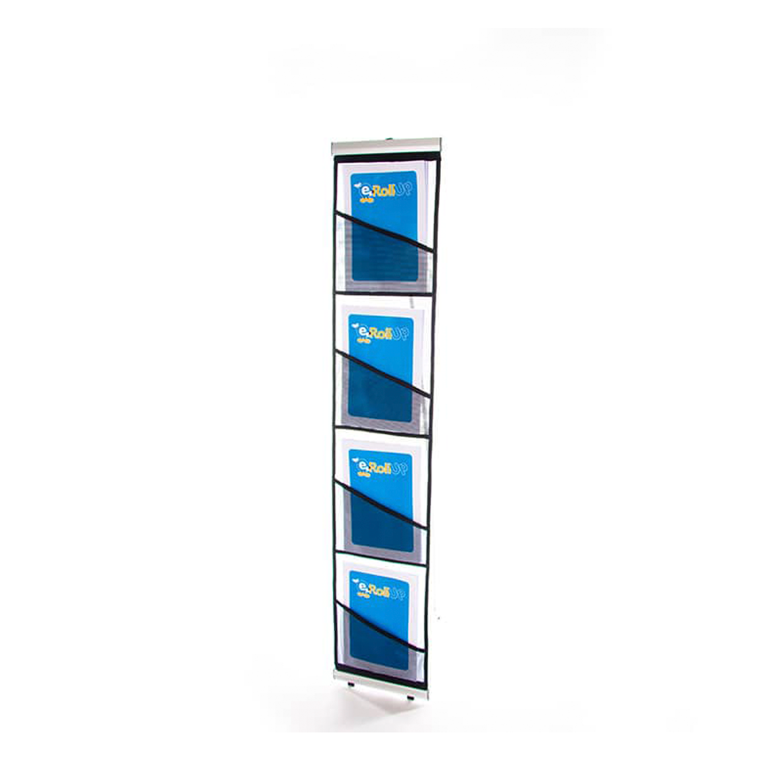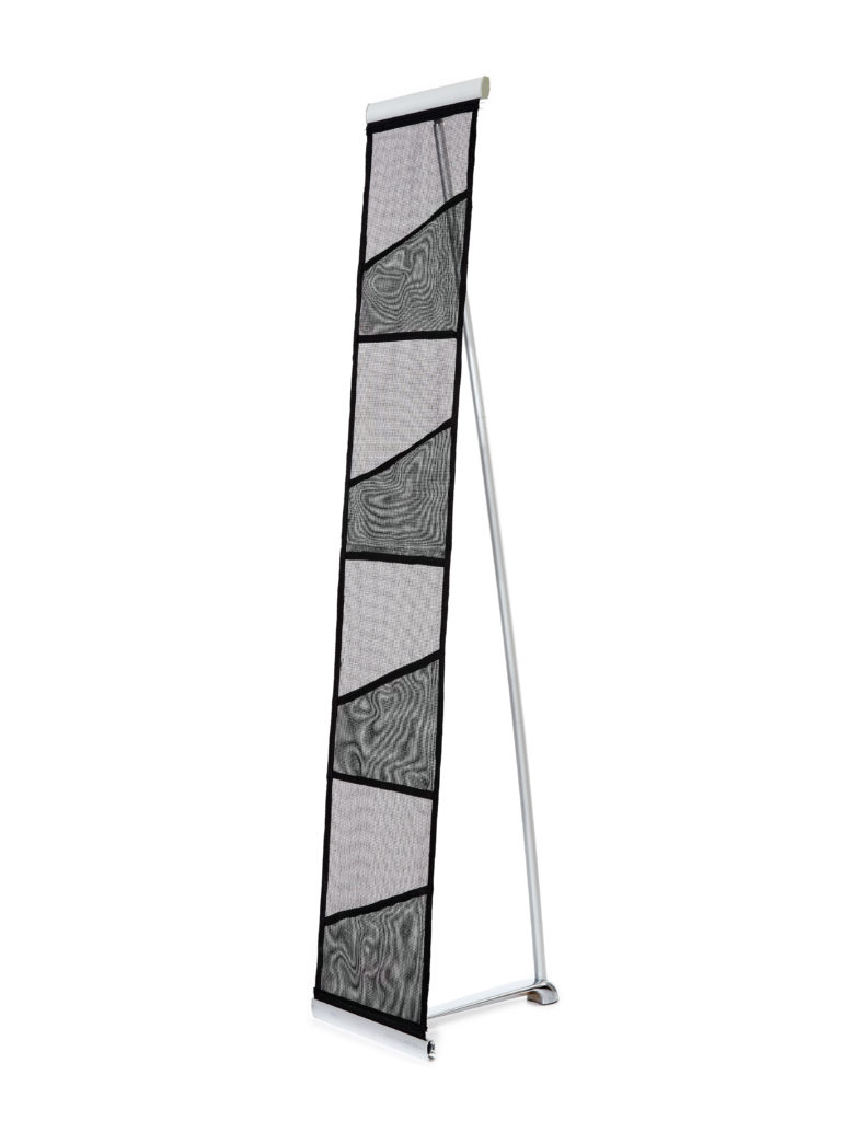 Broschyrställ Nät – Vårt absolut billigaste broschyrställ som går snabbt och enkelt att montera upp. Broschyrstället tar minsta möjliga plats vid transport och väger endast 1 kg. Denna modell finns dessutom i två olika varianter. Varianten ”enkelt” har fyra olika platser för broschyrer medans ”dubbel” har åtta stycken platser. Broschyrstället levereras komplett med väska.