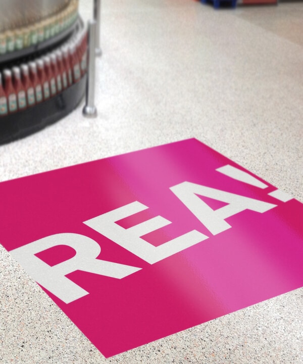 med fyrfärgstryck. Exponera dig på en yta som ofta är underskattad. Ingen går över en golvdekal utan att notera ditt budskap.