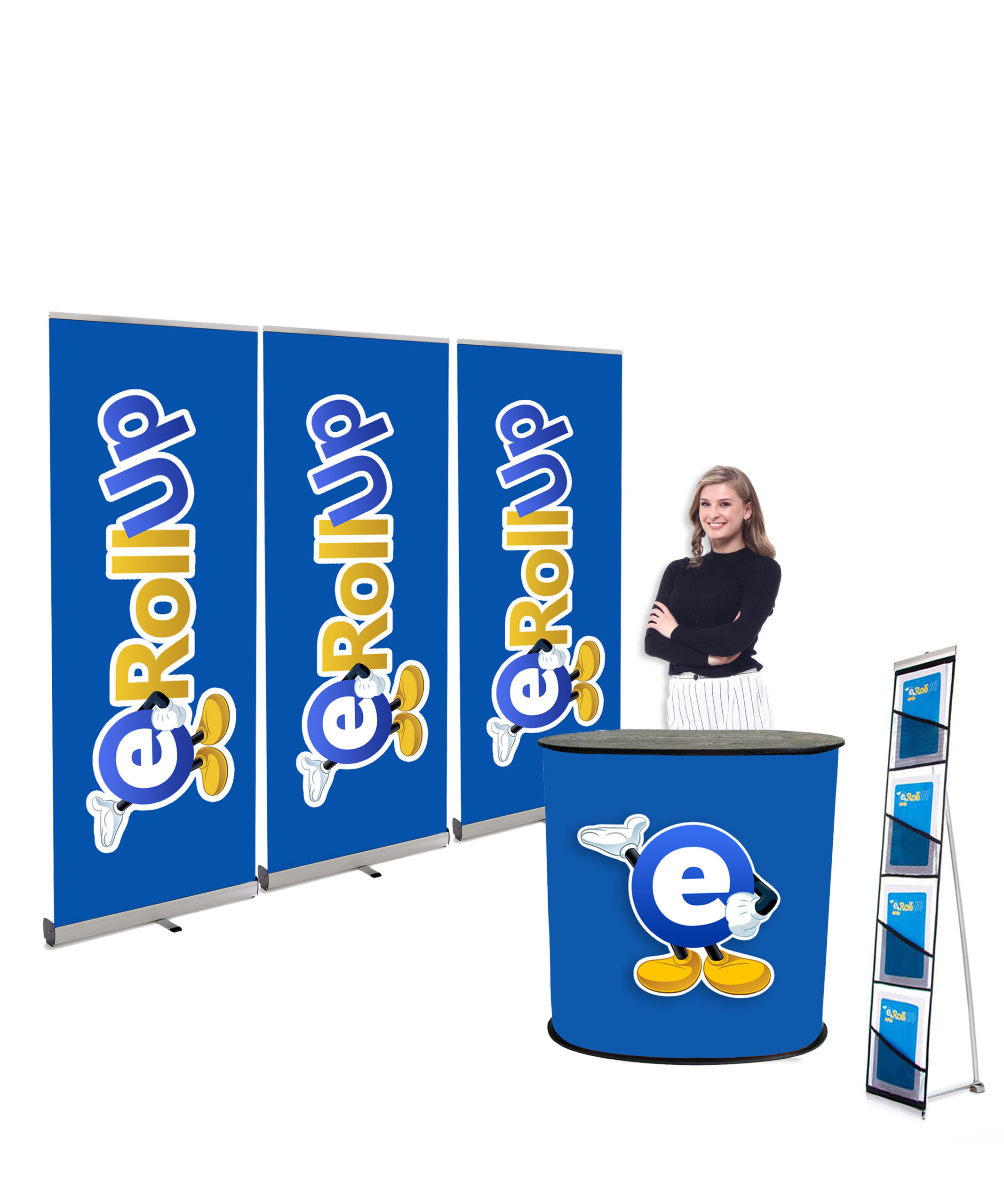 Ett billigt och prisvärt monterpaket för dig som kanske ska på mässa en första gång eller har en liten och begränsad monteryta. Paketet består av 3st Rollup Ekonomi 85 x 200 cm, en mässdisk Value Kurvad samt ett praktiskt och billigt broschyrställ i nät.