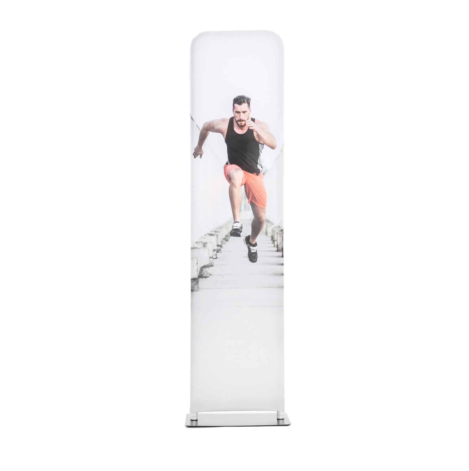 En perfekt display om du vill ha en fin minimalistisk exponering som ger dig möjlighet att snabbt och enkelt byta ut motivet/bildvåden. Displayen består utav sammanlänkande aluminiumrör som lätt klickas ihop till en ram. Över ramen träds sedan en dubbelsidig tygbild.