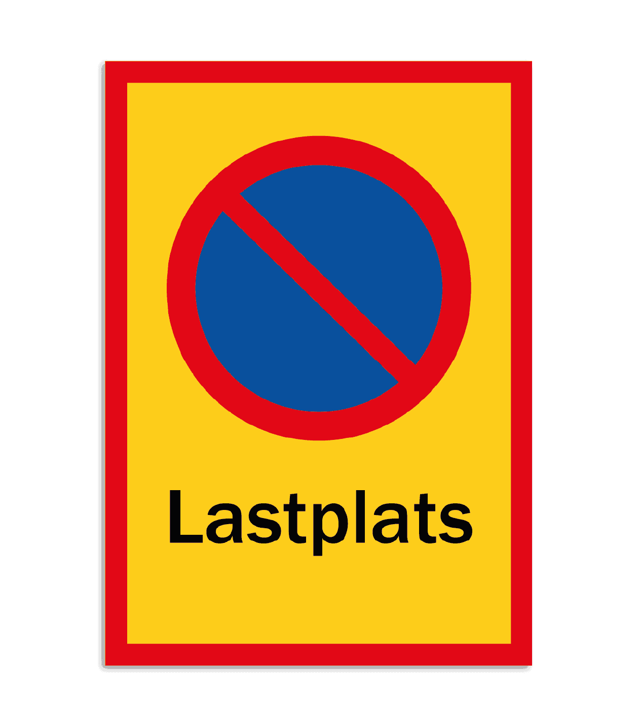 Förbjuden parkering med texten Lastplats. Skylten finns i två storlekar, A4 eller A3 och ni kan välja mellan materialen Aluminium eller Homogen plast (inkl. skyddslaminat). Homogen plast är en kvalitativ plast och håller ofta bra mot yttre påverkan. Skall skylten monteras på stolpe rekommenderar vi att ni väljer kantvikt Aluminium och SH-klammer som tillval. Annars kan du välja mellan förborrade hål eller dubbelhäftande tejp på baksidan.