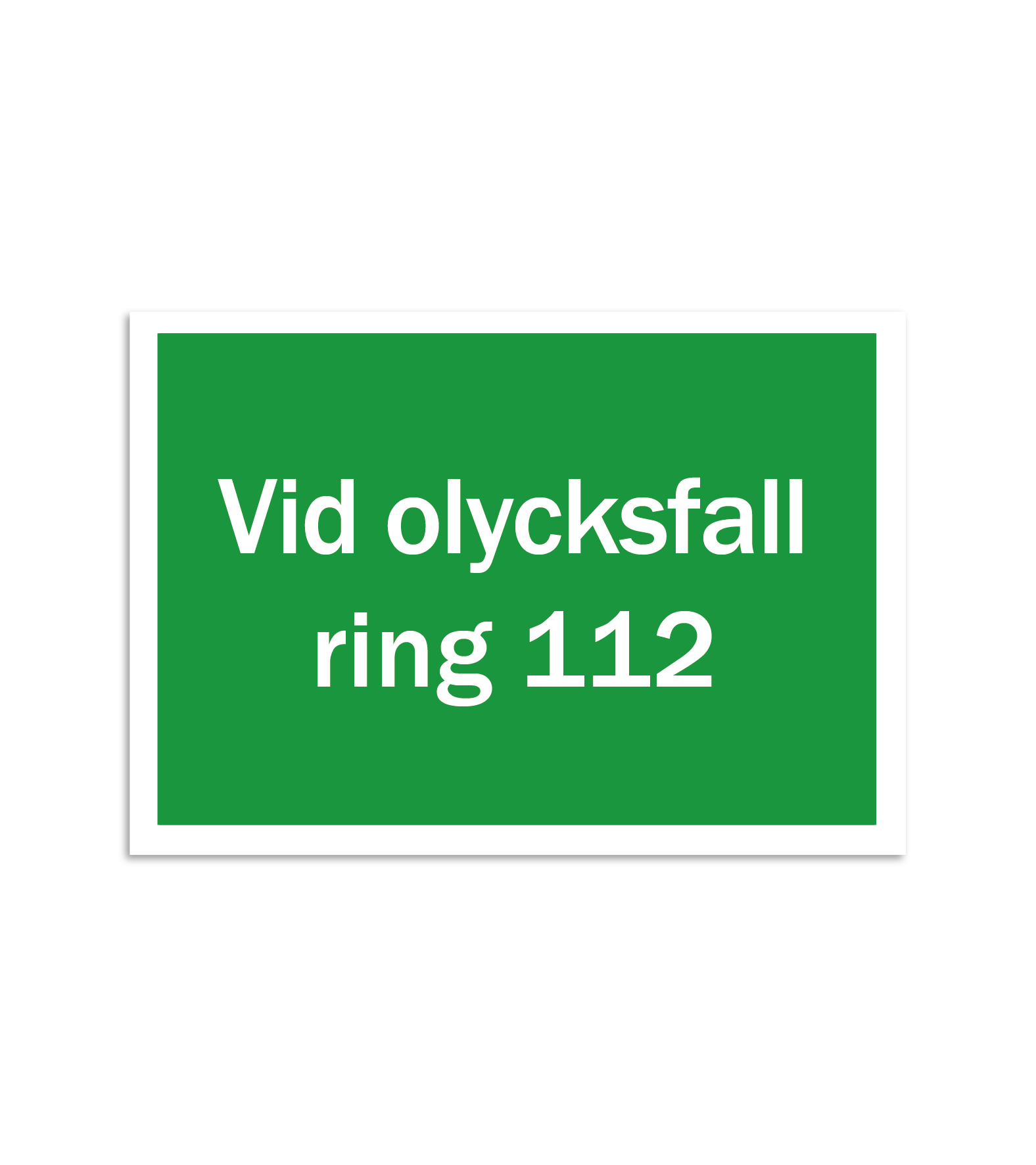 Skylt – Vid olycksfall ring 112